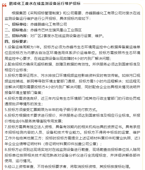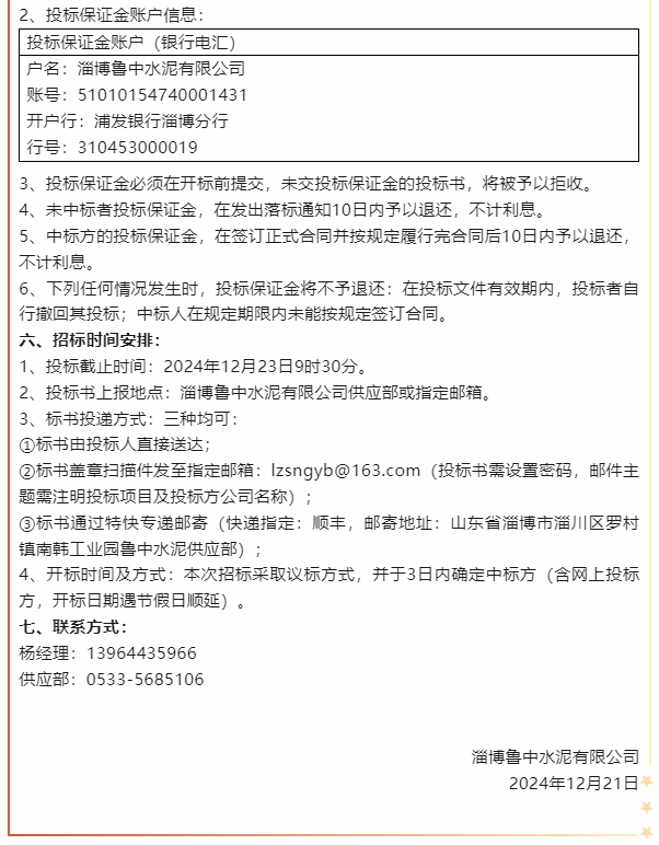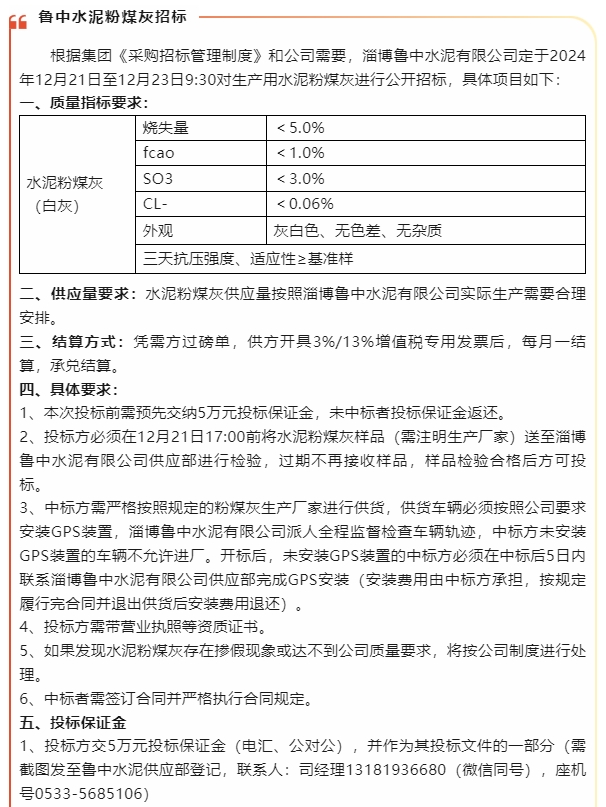 【招標(biāo)公告】魯中水泥、鵬峰化工