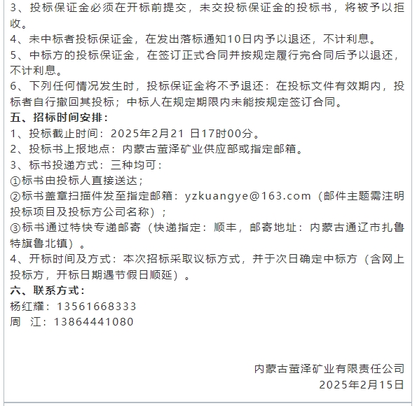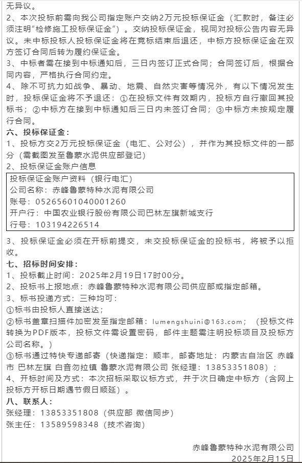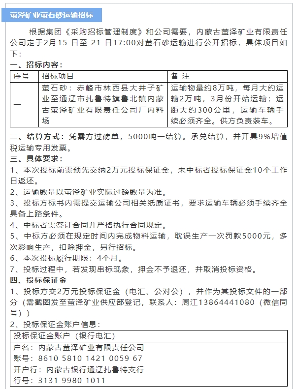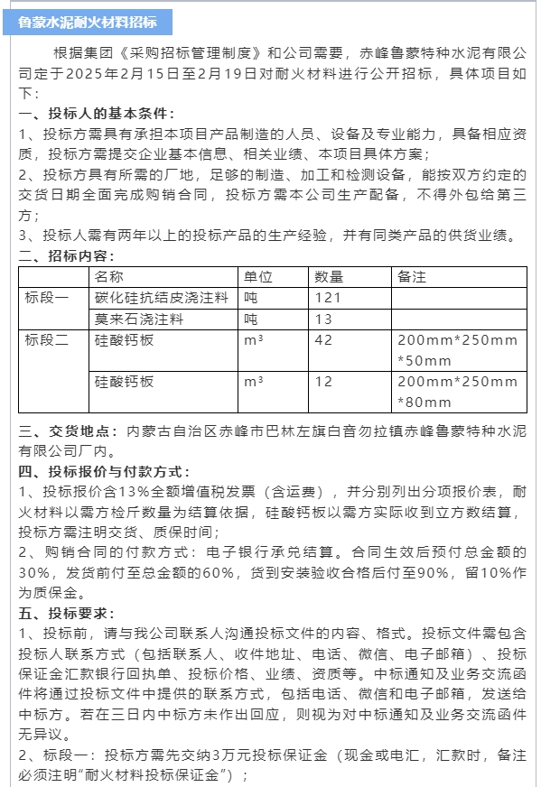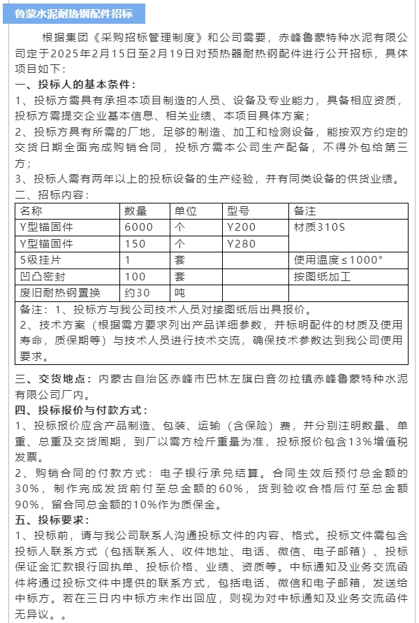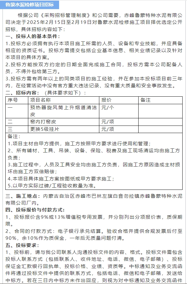 【招標(biāo)公告】螢澤礦業(yè)、魯蒙水泥