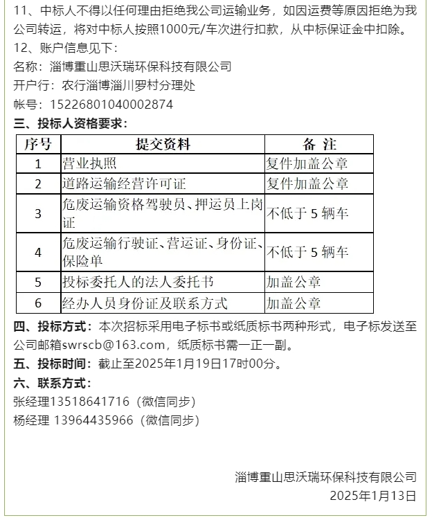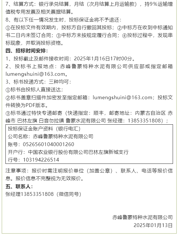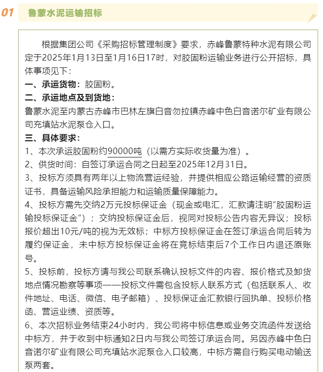 【招標(biāo)公告】魯蒙水泥、重山思沃瑞