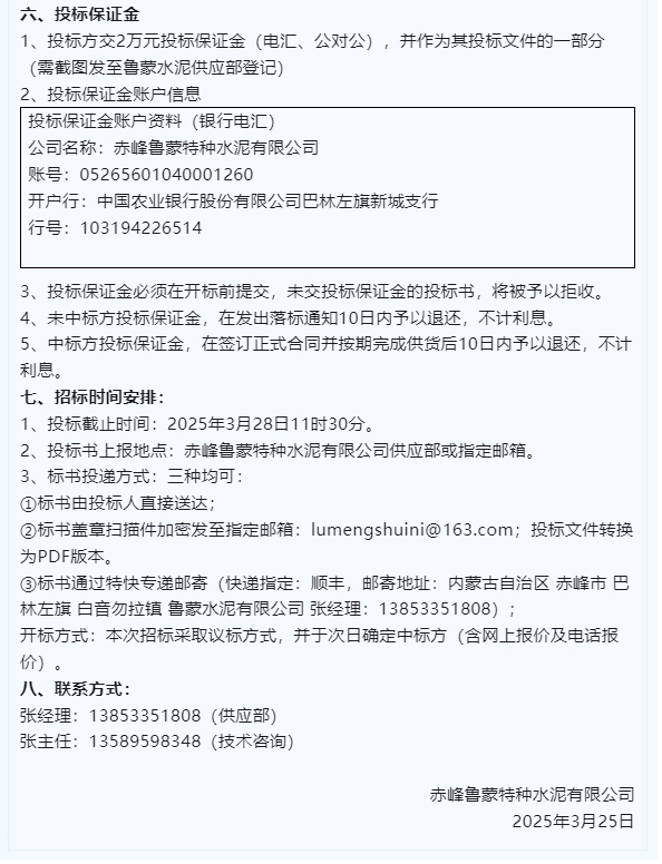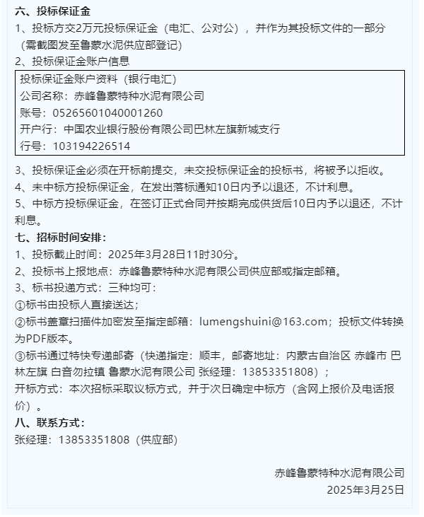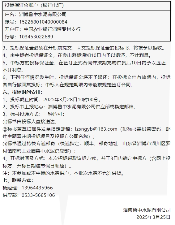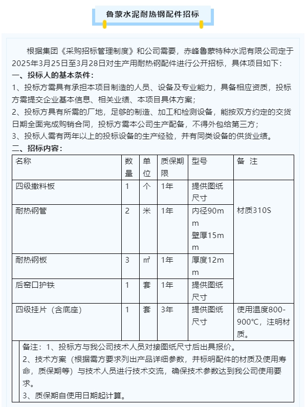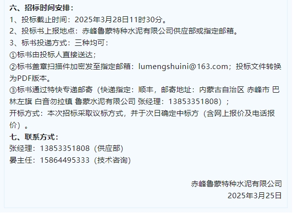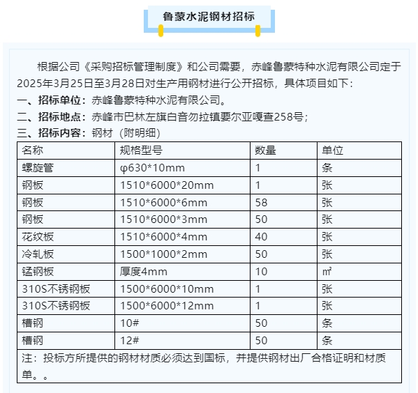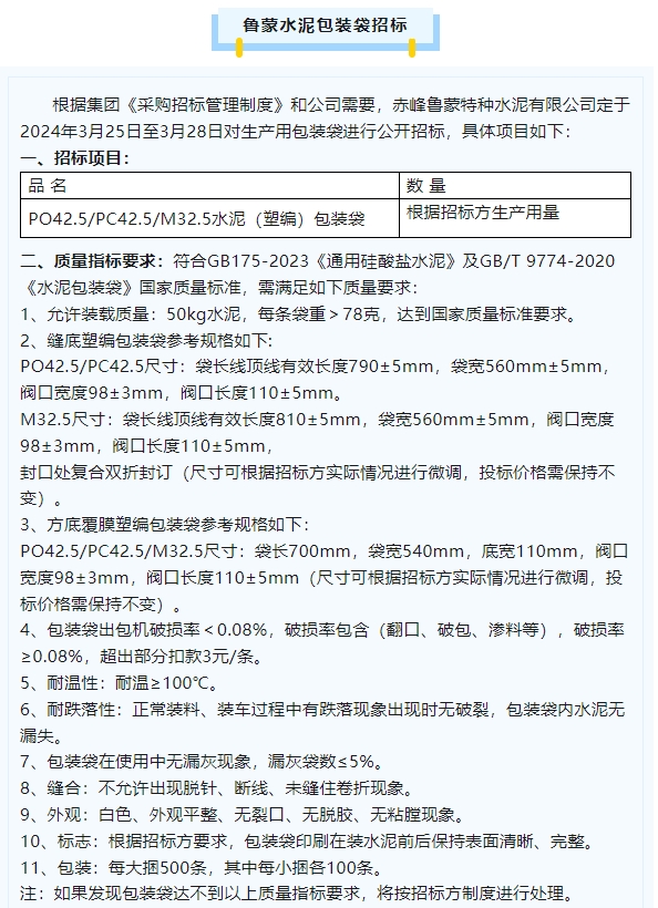 【招標(biāo)公告】魯中水泥、魯蒙水泥