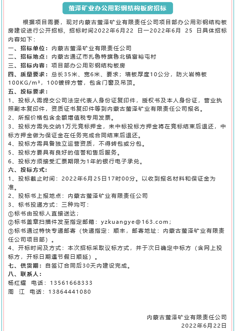 【招標(biāo)公告】魯中水泥煙煤招標(biāo)、螢澤礦業(yè)辦公用彩鋼結(jié)構(gòu)板房、項目建設(shè)監(jiān)理招標(biāo)
