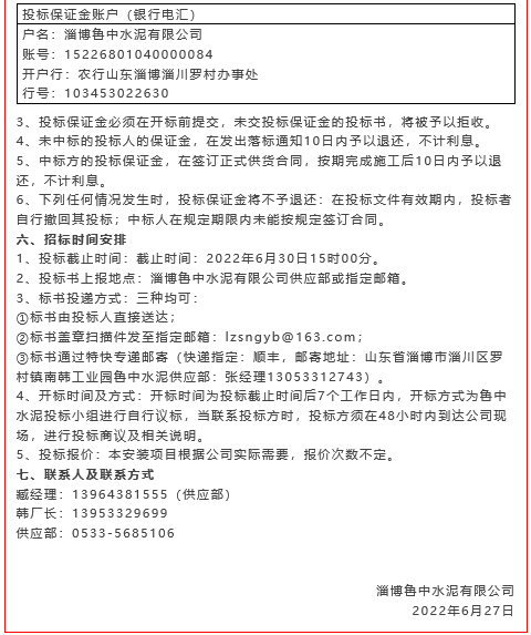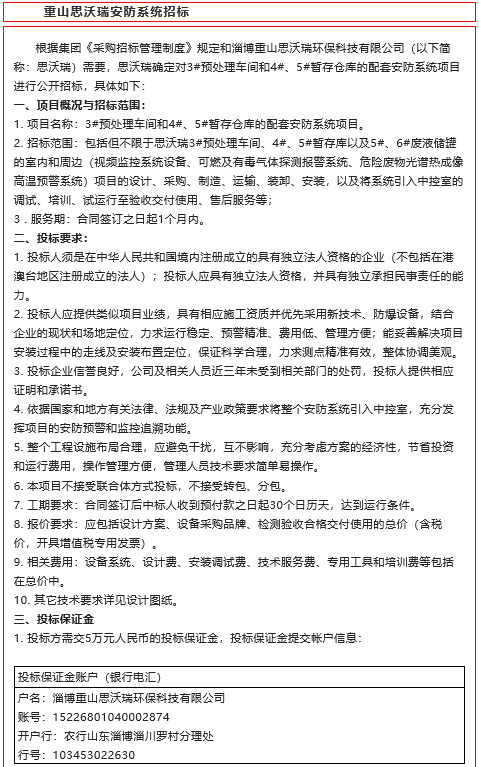 【招標(biāo)公告】魯中水泥電纜線鋪設(shè)及橋架安裝招標(biāo)、重山思沃瑞安防系統(tǒng)招標(biāo)?