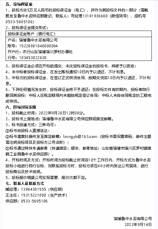 【招標(biāo)公告】魯中水泥耐火磚及澆注料、硅酸鈣板招標(biāo)