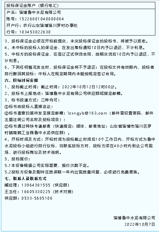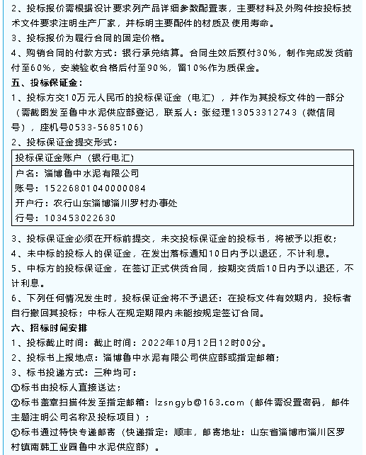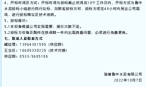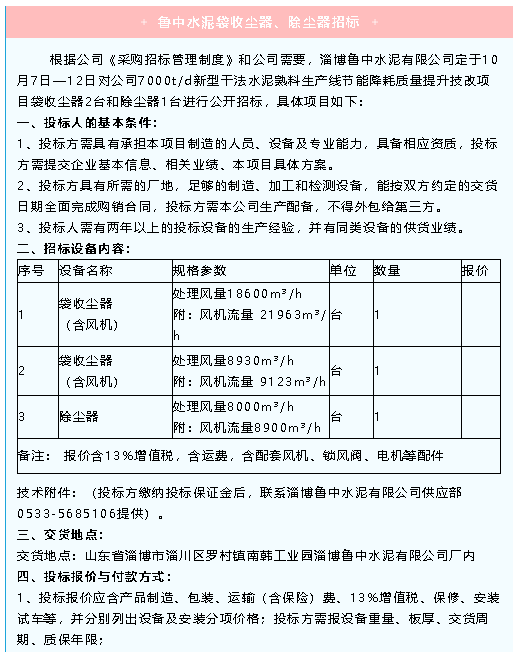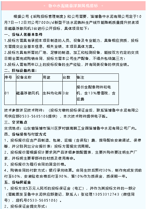 【招標(biāo)公告】魯中水泥袋收塵器、除塵器、磁懸浮鼓風(fēng)機(jī)招標(biāo)