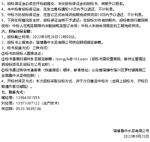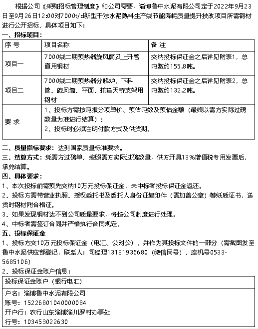 【招標(biāo)公告】魯中水泥