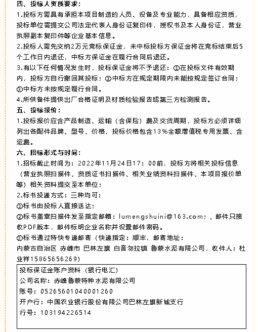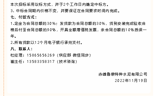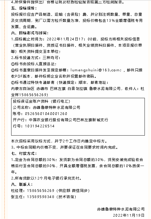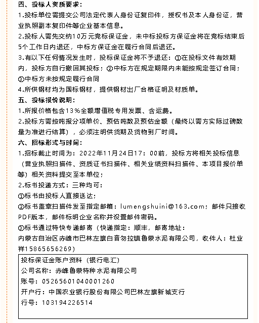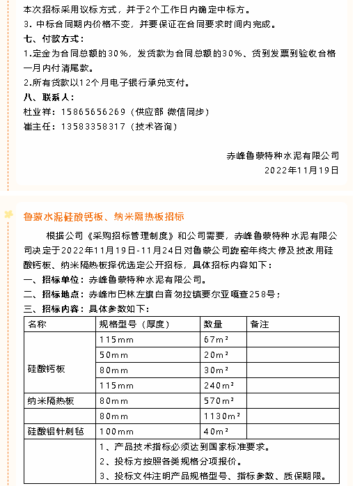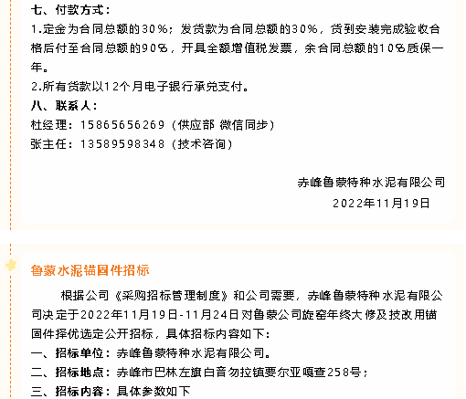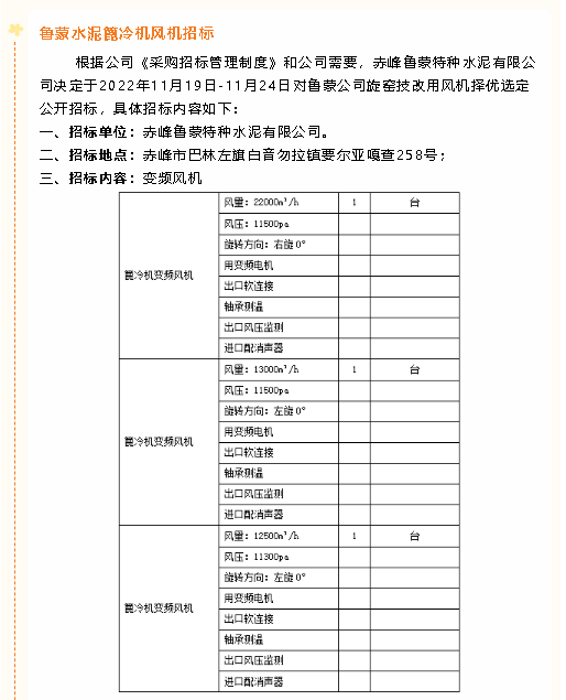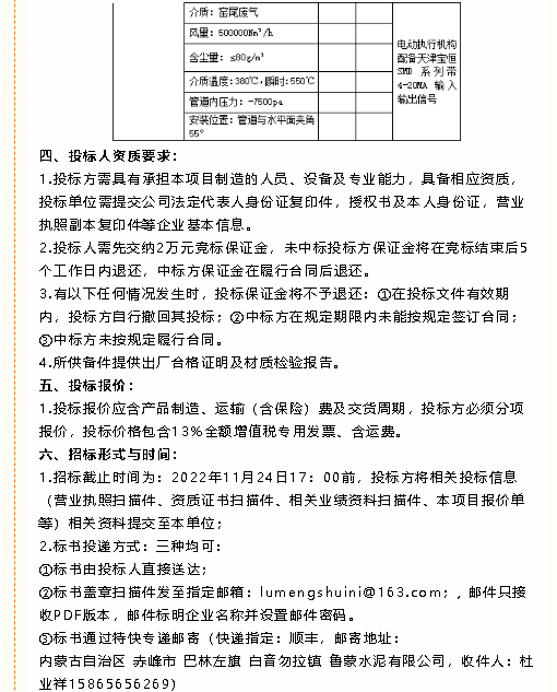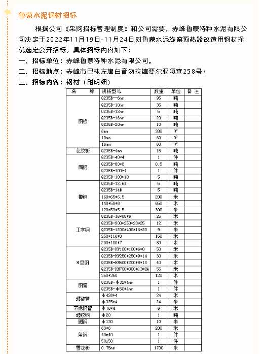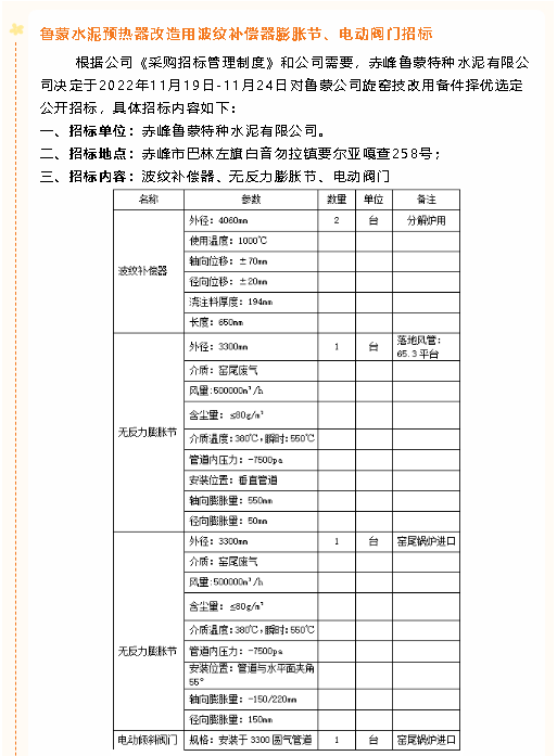 【招標(biāo)公告】魯蒙水泥風(fēng)機(jī)、鋼材、硅酸鈣板、納米隔熱板、錨固件、波紋補(bǔ)償器膨脹節(jié)、電動(dòng)閥門招標(biāo)