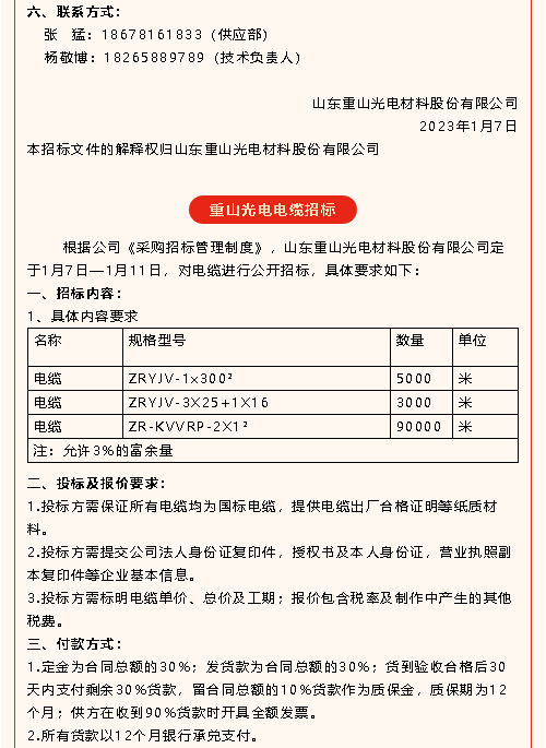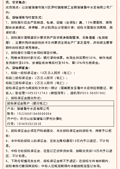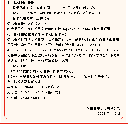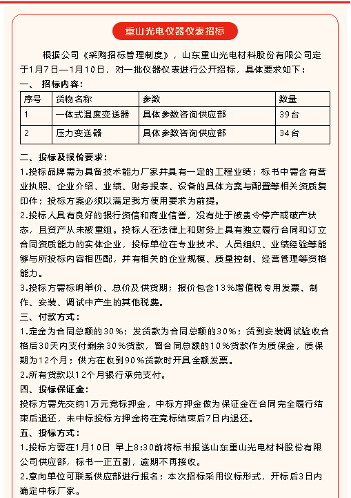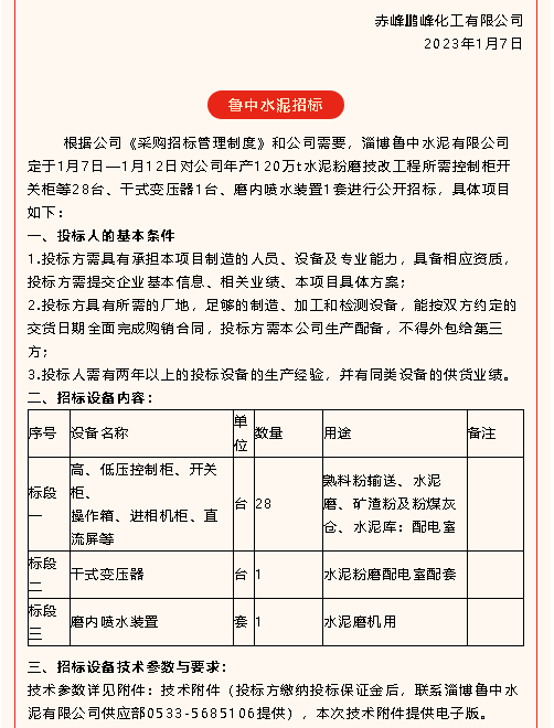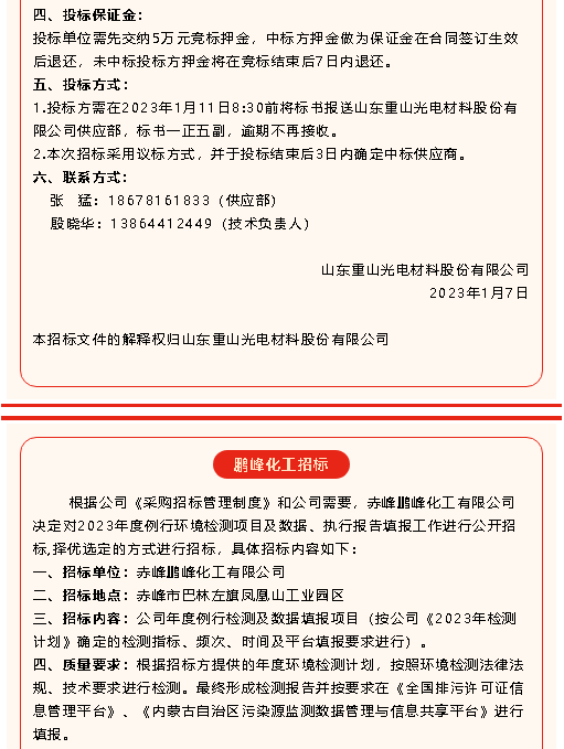 【招標(biāo)公告】重山光電、鵬峰化工、魯中水泥