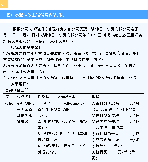 【招標(biāo)公告】魯中水泥技改工程設(shè)備安裝、運(yùn)輸招標(biāo)