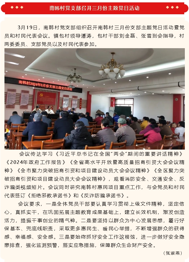 【黨建】南韓村黨支部召開三月份主題黨日活動、魯中水泥黨支部召開支委會