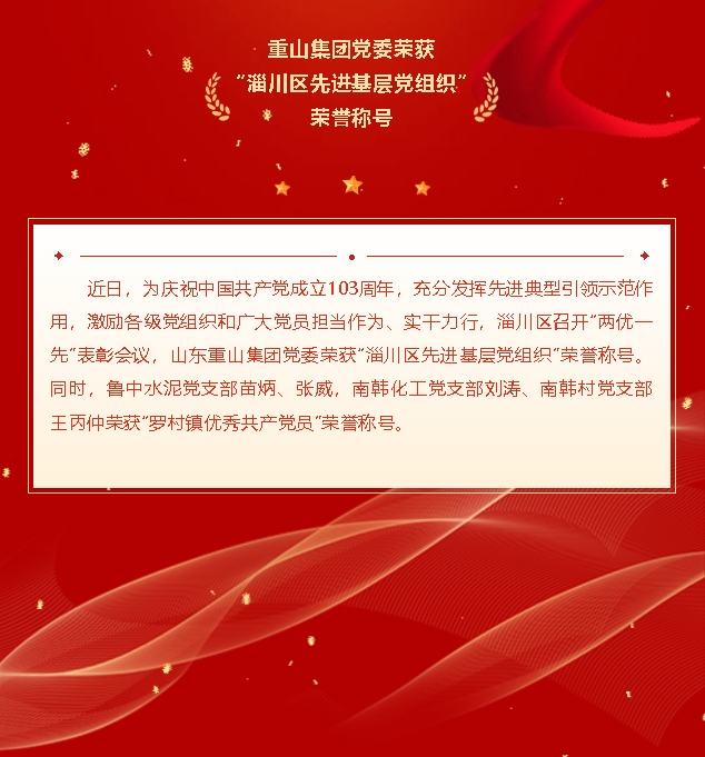 【頭條】集團黨委榮獲“淄川區(qū)先進基層黨組織”榮譽稱號