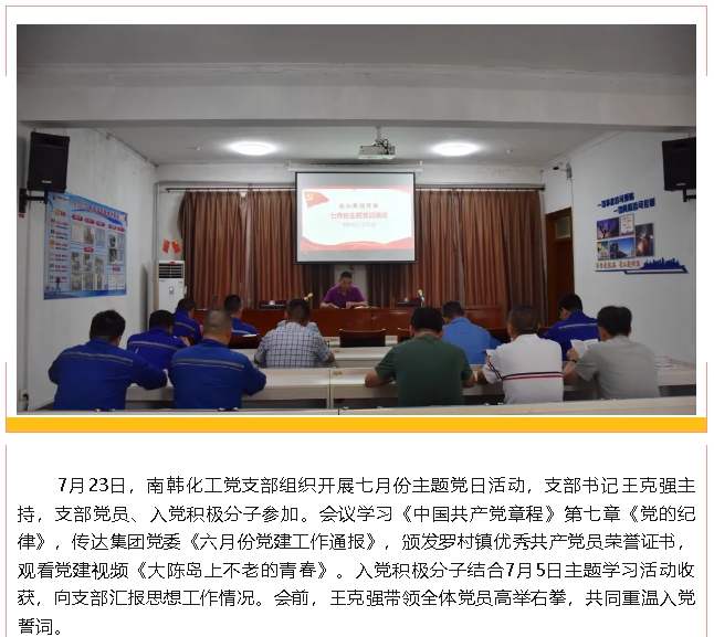 【黨建】南韓化工黨支部開(kāi)展七月份主題黨日活動(dòng)