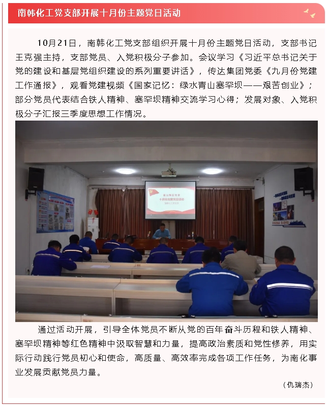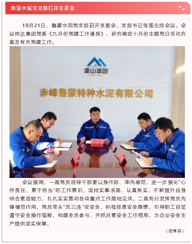 【黨建】南韓化工黨支部開展主題黨日活動(dòng)、魯蒙水泥黨支部召開支委會(huì)