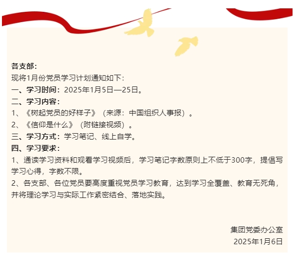 【通知】集團黨委1月份學(xué)習(xí)通知