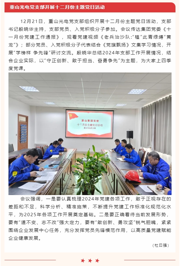 【黨建】集團機關黨支部、重山光電黨支部開展十二月份主題黨日活動