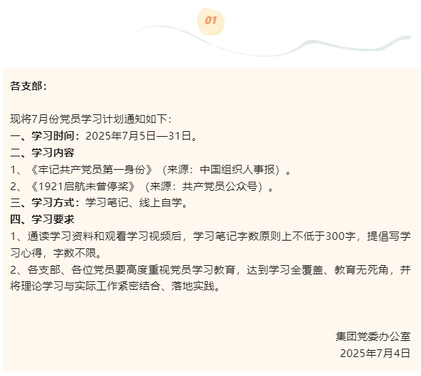 【通知】集團黨委7月份學(xué)習(xí)通知