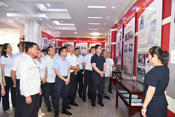 隨后,全體黨員干部代表集體乘車赴博山焦裕祿紀念館現(xiàn)場參觀,接受革命傳統(tǒng)教育,學習弘揚焦裕祿精神,進一步增強黨性修養(yǎng)和創(chuàng)業(yè)奮斗意識。在紀念館,黨員干部代表認真聽取講解,通過一張張圖片、一件件文物、一段段故事學習回顧焦裕祿同志光輝偉大的一生和感人致深的革命事跡,切身感受了焦裕祿同志親民愛民、艱苦奮斗、科學求實、迎難而上、無私奉獻的崇高精神。參觀結束后,全體黨員干部代表向焦裕祿同志塑像敬獻花籃并鞠躬致敬。全體黨員代表重溫入黨誓詞。參觀學習活動給黨員干部上了一堂生動難忘的黨課。本次主題教育活動,集團公司還為全體黨員發(fā)放了《苦難輝煌》學習書籍,要求每名黨員牢記黨的奮斗歷史和革命傳統(tǒng),堅定不移的跟黨走,以高度的責任感、使命感投入到本職工作中去,為黨的事業(yè)發(fā)展做出新的貢獻。