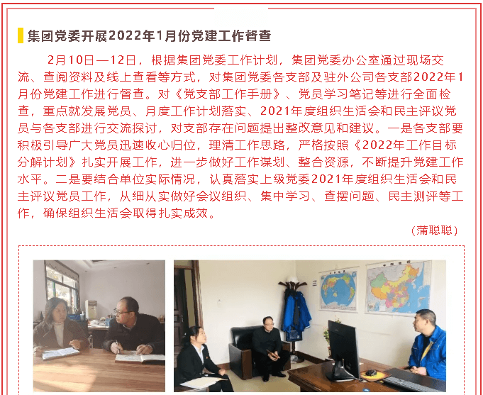 集團黨委開展2022年1月份黨建工作督查