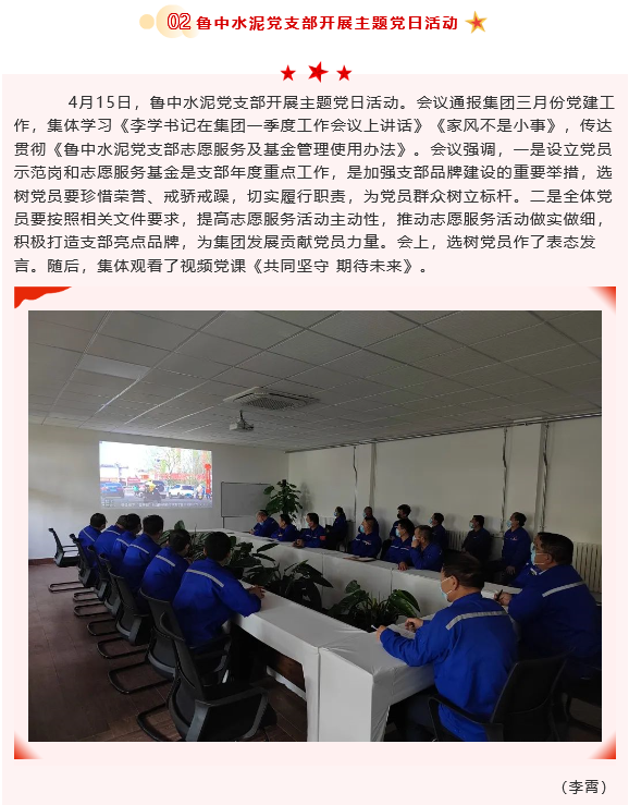 【黨建】區(qū)委組織部黨建工作示范點觀摩點評;魯中水泥黨支部、重山光電黨支部開展主題黨日活動