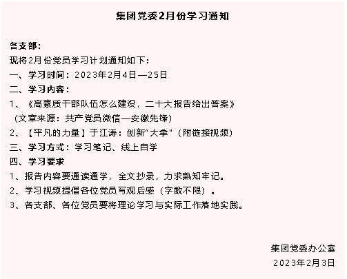 【通知】集團(tuán)黨委2月份學(xué)習(xí)通知