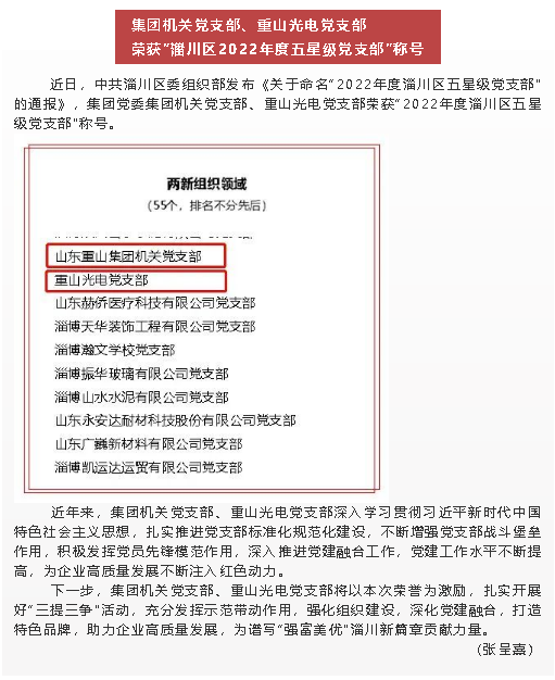 【黨建】集團機關黨支部、重山光電黨支部榮獲“淄川區(qū)2022年度五星級黨支部”稱號