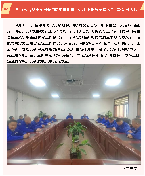 【黨建】東瓷科技黨支部到集團(tuán)開(kāi)展開(kāi)放式組織生活、魯中水泥黨支部開(kāi)展“落實(shí)新思想 引領(lǐng)企業(yè)節(jié)支增效”主題黨日活動(dòng)