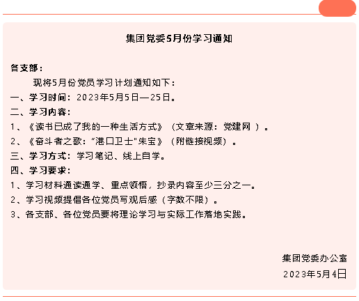 【通知】集團(tuán)黨委5月份學(xué)習(xí)通知
