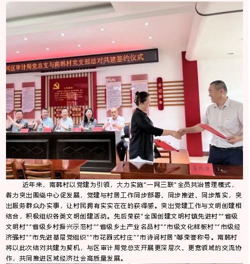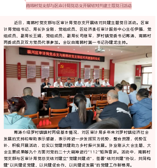 【黨建】南韓村黨支部與區(qū)審計局黨總支開展結(jié)對共建主題黨日活動
