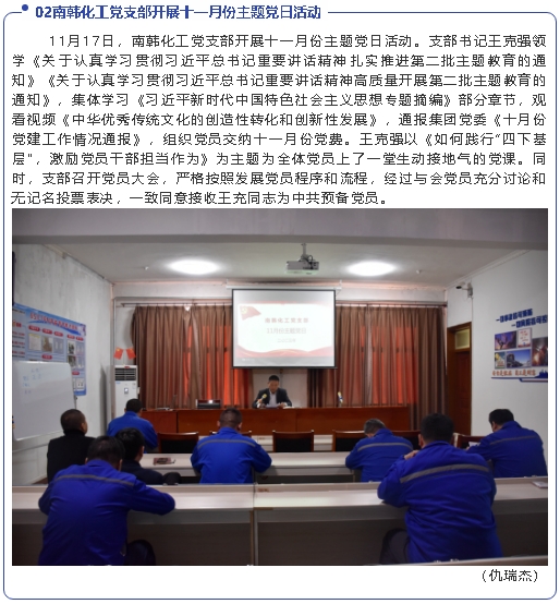 【黨建】集團機關(guān)黨支部召開支委擴大會、南韓化工黨支部開展十一月份主題黨日活動
