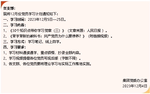 【通知】集團(tuán)黨委12月份學(xué)習(xí)通知