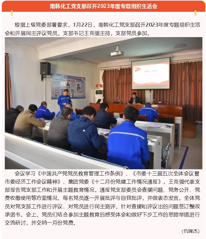 【黨建】集團(tuán)機(jī)關(guān)黨支部、南韓化工黨支部分別召開2023年度專題組織生活會(huì)